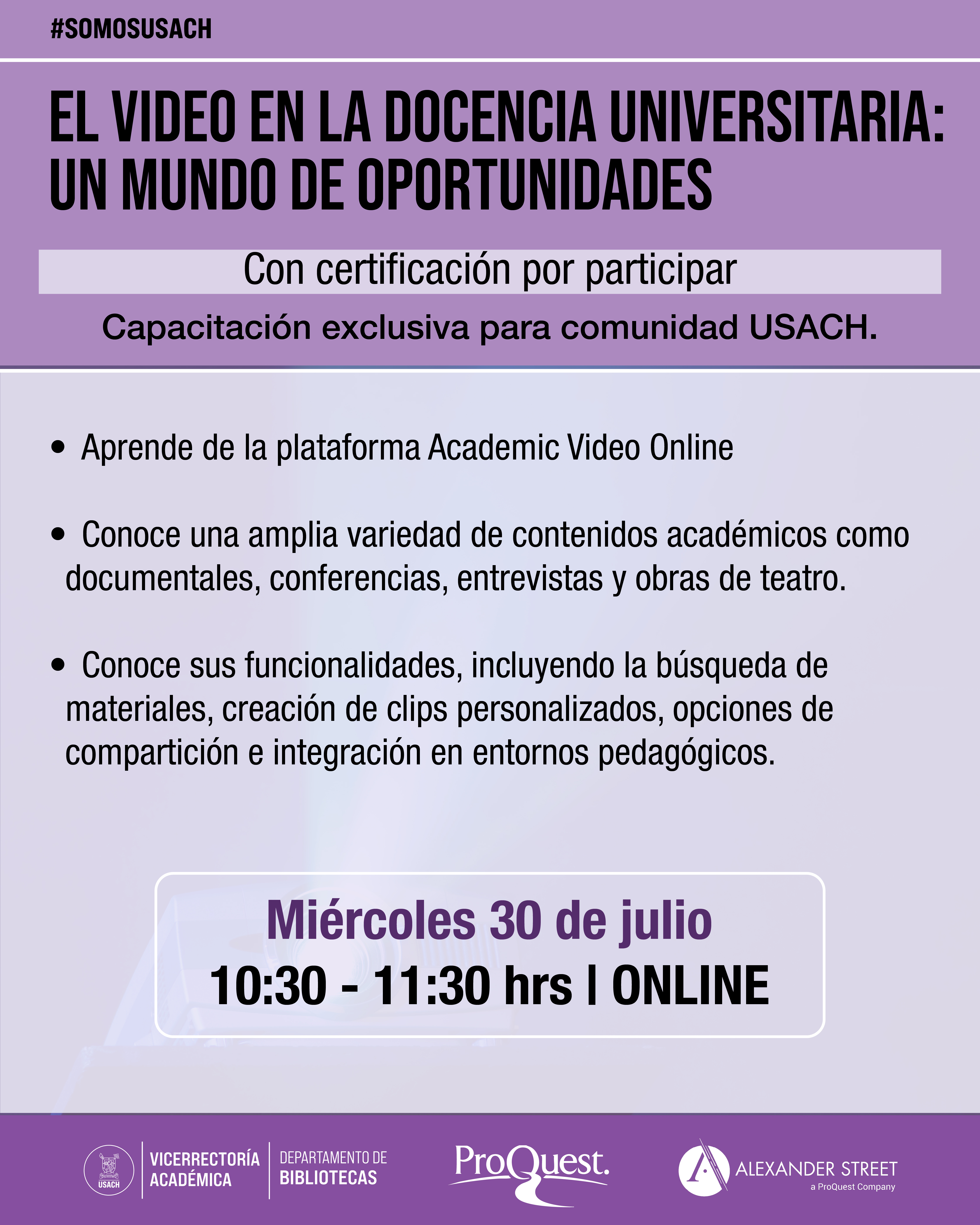 Descripción: Explora las funcionalidades de la plataforma Academic Video Online, que ofrece acceso a documentales, conferencias, entrevistas, obras de teatro y otros materiales audiovisuales. Se abordará cómo buscar contenidos, crear clips personalizados, compartirlos e integrarlos en entornos pedagógicos.