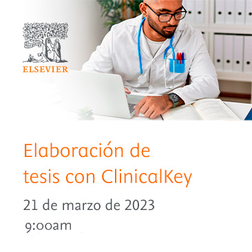 Los invitamos a participar en el Seminario web: Elaboración de tesis con ClinicalKey. En esta sesión hablaremos de los contenidos y herramientas más útiles para encontrar materiales de referencia, así como algunas recomendaciones alrededor de la elaboración de la tesis.