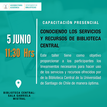 Taller: "Conociendo los servicios y recursos de Biblioteca Central"