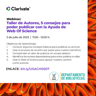 Te invitamos a participar en el Webinar: Taller de autores, 5 consejos para poder publicar con la ayuda de Web Of Science.