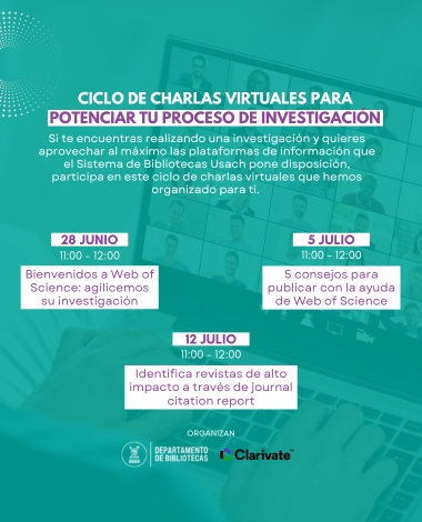 Ciclo de capacitaciones para investigadoras e investigadores Usach, organizado por Bibliotecas Usach y Editorial Clarivate