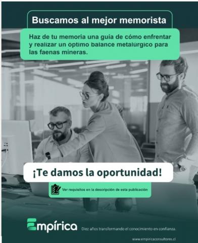 Envíanos tus antecedentes a memorista@empiricaconsultores.cl antes del 15/03/2023