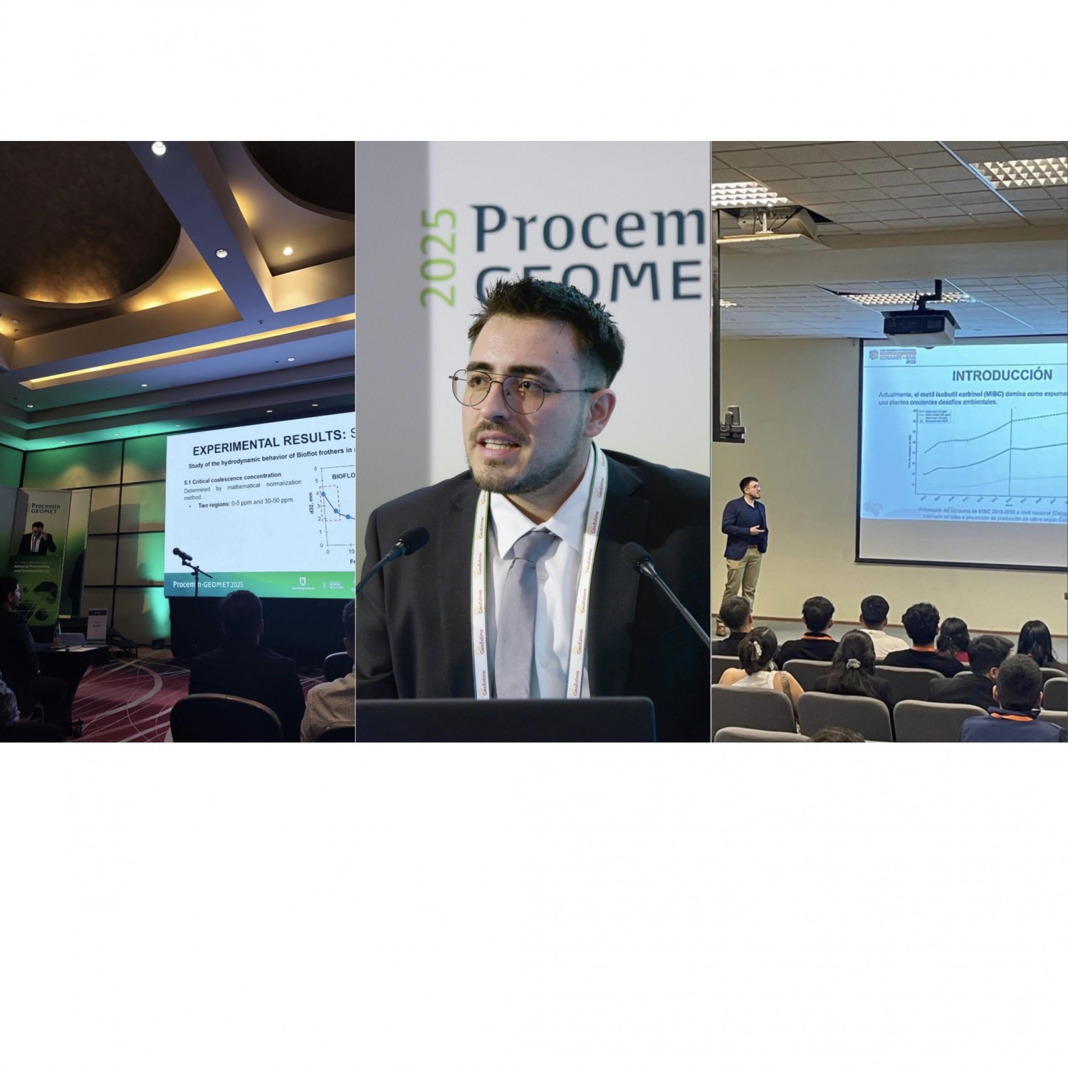 Estudiante del Magíster en Ciencias de la Ingeniería, mención Metalurgia Extractiva y Ciencia e Ingeniería de los Materiales, ha participado en tres congresos durante 2025 (PROCEMIN-GEOMET, SIMIN y CONAMET), presentando avances que desafían el uso tradicional de reactivos en flotación. Su investigación evalúa espumantes biodegradables a partir de residuos frutales y vegetales, los cuales han sido implementados en pilotajes mineros, demostrando buen desempeño y una mitigación significativa del impacto ambiental.