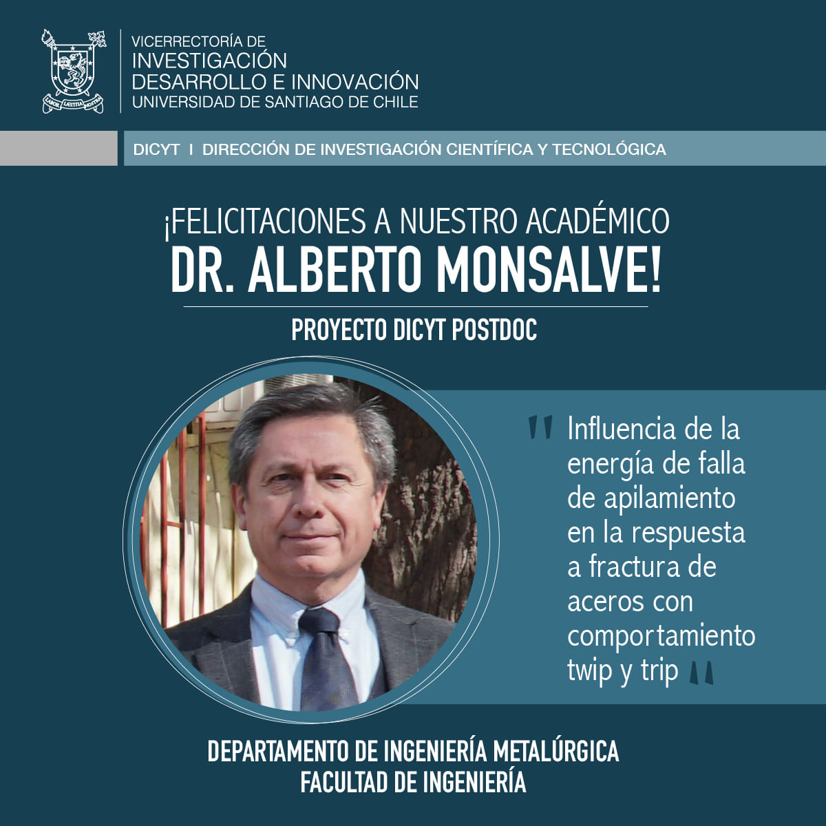 Nos complace felicitar a nuestro académico Dr. Alberto Monsalve, por haber adjudicado DICYT POSTDOCTORADO, otro logro que permitirá seguir avanzando en investigación e innovación en áreas estratégicas