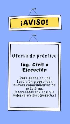 Se requiere alumno/a de la carrera de Ing. Civil en Metalurgia o Ejecución en Metalurgia para práctica urgente