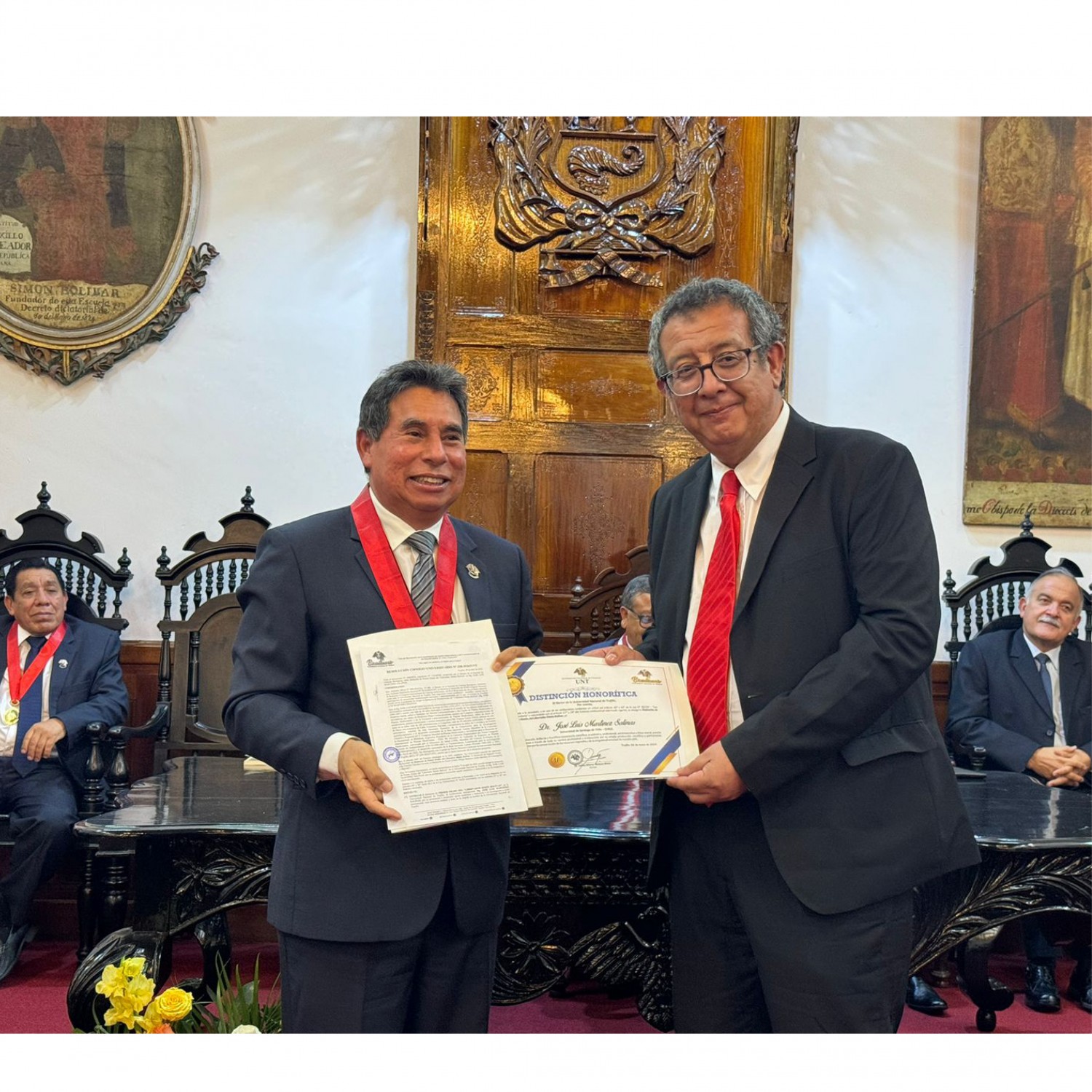 Dentro de los actos conmemorativos se rindió homenaje el lunes 6 de mayo a un grupo de investigadores peruanos y latinoamericanos ante la presencia del Sr. Rector Dr. Carlos Alberto Vasquez Boyer y del Ministro de Medio Ambiente de Perú y las más altas autoridades de la Universidad. En este grupo se le entregó la "Distinción de Primer Grado del Libertador Simón Bolívar" al encargado de Vinculación con el Medio del Departamento de Ingeniería Metalúrgica José L. Martínez Salinas, quien también es Doctor Honoris Causa de esa misma casa de estudios superiores del hermano país del norte.