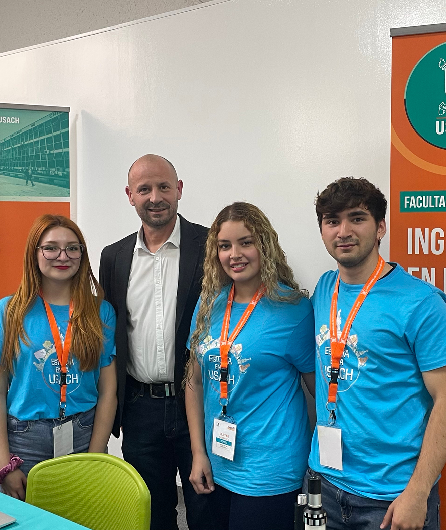 Del 2 al 5 de enero de 2024, se llevó a cabo la Feria de Admisión en las instalaciones de la Universidad de Santiago de Chile. Durante este evento, estudiantes de secundaria que tomaron la Prueba de Acceso a la Educación Superior (PAES) recibieron orientación sobre las carreras de su interés. La Feria contó con la participación de profesores del departamento y tres estudiantes: Fernanda Molina (Ing. de Ejecución en Metalurgia), Cleyna Carrasco y Bastián Cesani (ambos de Ing. Civil en Metalurgia). Cabe destacar la presencia de autoridades universitarias; el primer día asistió el Decano de la Facultad de Ingeniería, Dr. Cristian Vargas, y el tercer día estuvo presente el Director del Departamento, Dr. Alfredo Artigas (quien aparece en la fotografía). Hasta la fecha (jueves 04-01-24), aproximadamente 30 estudiantes han solicitado y postulado, siendo un 20% mujeres.