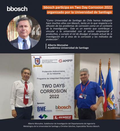 En el marco de una nueva edición de “Two Days Corrosion”, Alberto Monsalve González, Subdirector de Investigación del Departamento de Ingeniería Metalúrgica de la Usach, destacó la importancia de abordar distintas temáticas sobre la protección anticorrosiva en la industria.